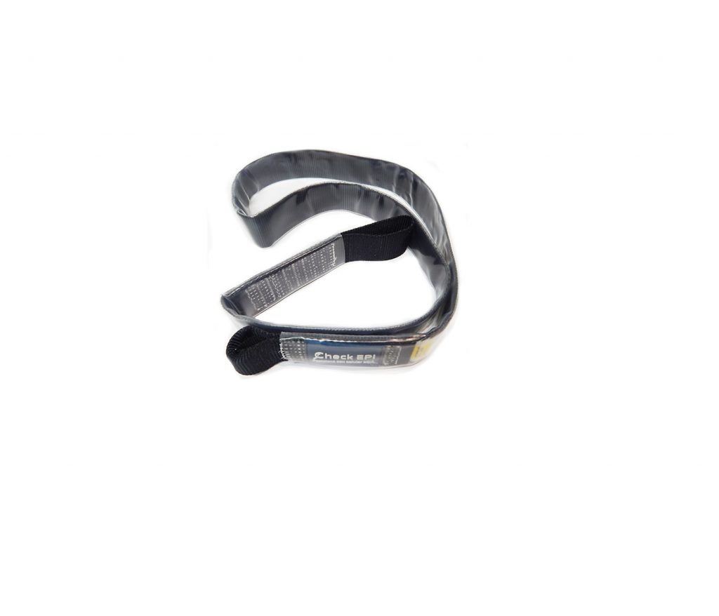 Fita de ancoragem em poliéster com 45 mm de largura, comprimento de 90 cm ou 1,50 m, alças nas extremidades com costura reforçada.