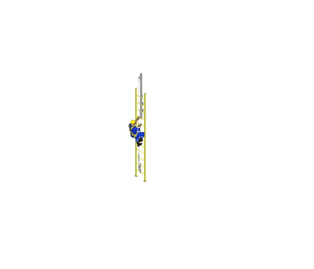 Kit de linha de vida para fixação em escada do tipo marinheiro, onde o usuário poderá se movimentar na escada de forma segura e com as mãos livres.