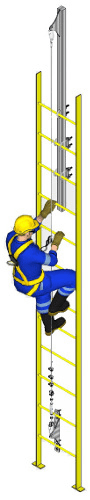 - Consiste na instalação de suportes (inferior e superior), cabo de aço, presilhas e absorvedor de energia, permitindo que através de um trava quedas para cabo de aço, guie o usuário ao subir e descer na escada em segurança;