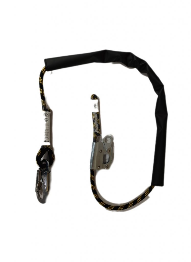 Talabarte de posicionamento/restrição ajustável, confeccionado em corda de poliamida de 16 mm, possui 1 conector classe T em aço com abertura de 20 mm e 1 conector em aço com abertura de 20 mm. Comprimento de 0,90 a 1,80 m.