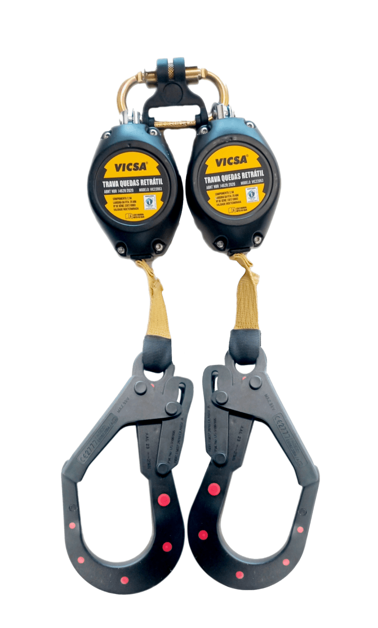 Trava quedas retrátil em Y com caixa em ABS e fita de aramida de 2,10 m e conectores dielétricos