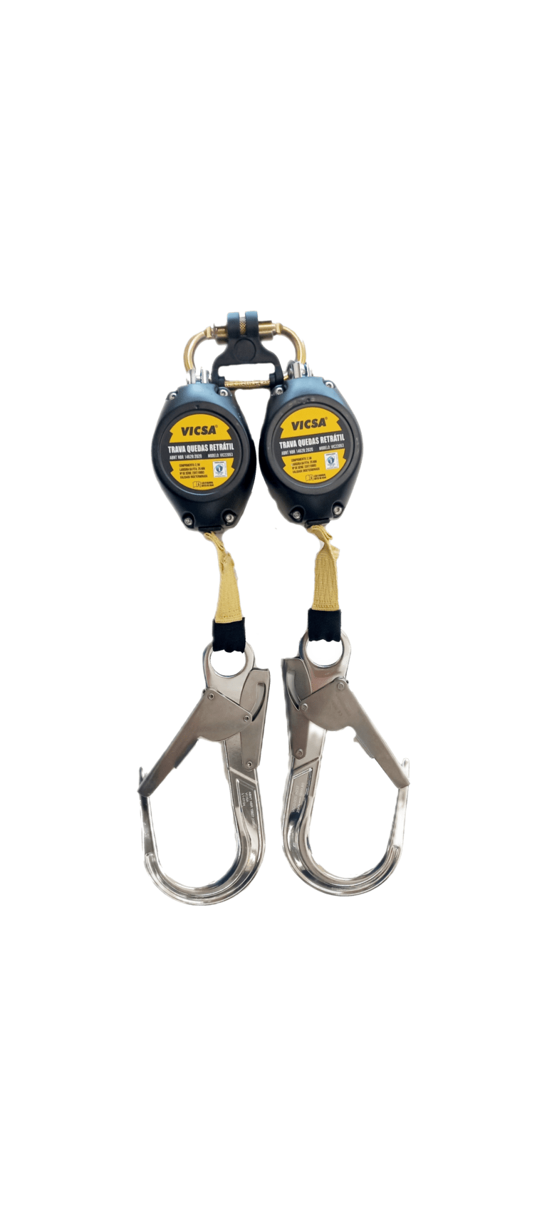 Trava quedas retrátil em Y com caixa em ABS e fita de aramida de 2,10 m